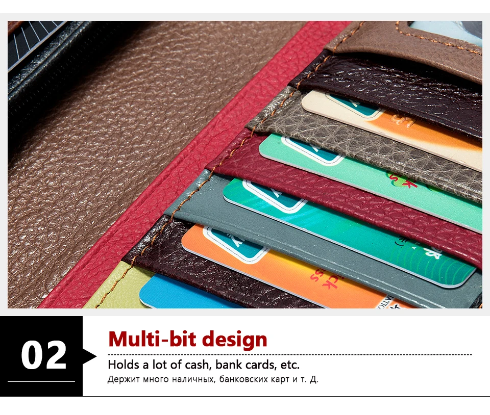 – Spacious interior with dedicated compartments for coins, multiple cards, and bills