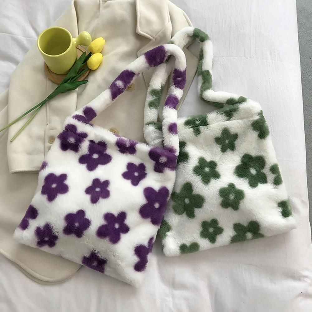 Women Cute Shoulder Bags Fluffy Flower Crossbody Bags