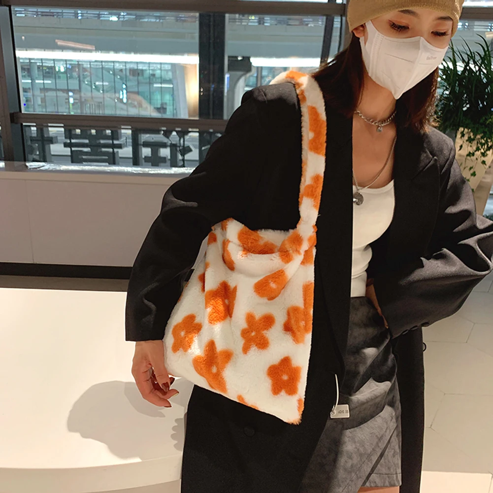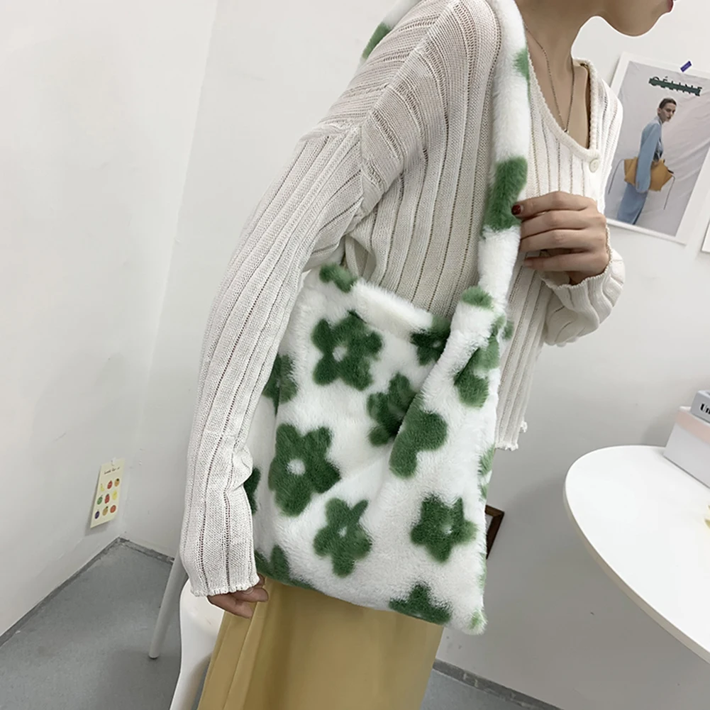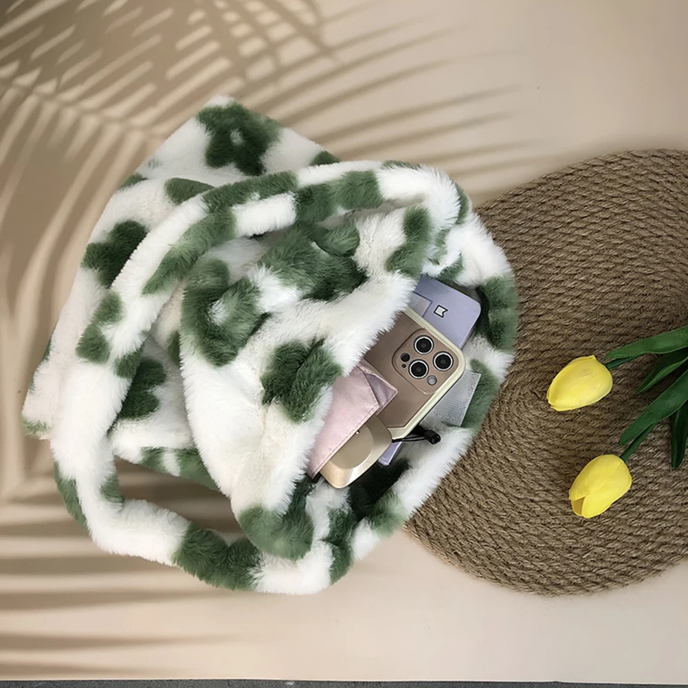 Autumn Winter Plush Tote Handbag Large Capacity Fashion Messenger Bag