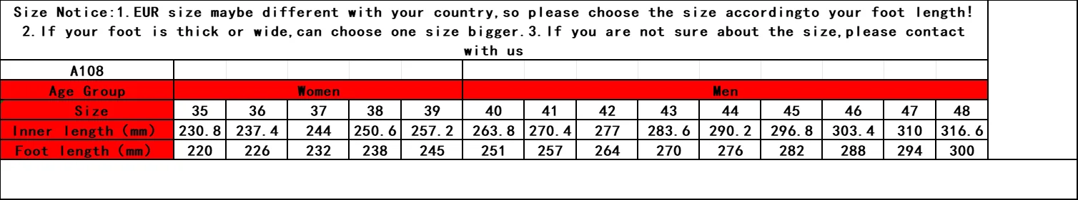 – Unisex sizing from 35 to 48 accommodates a broad range of foot sizes for men and women alike