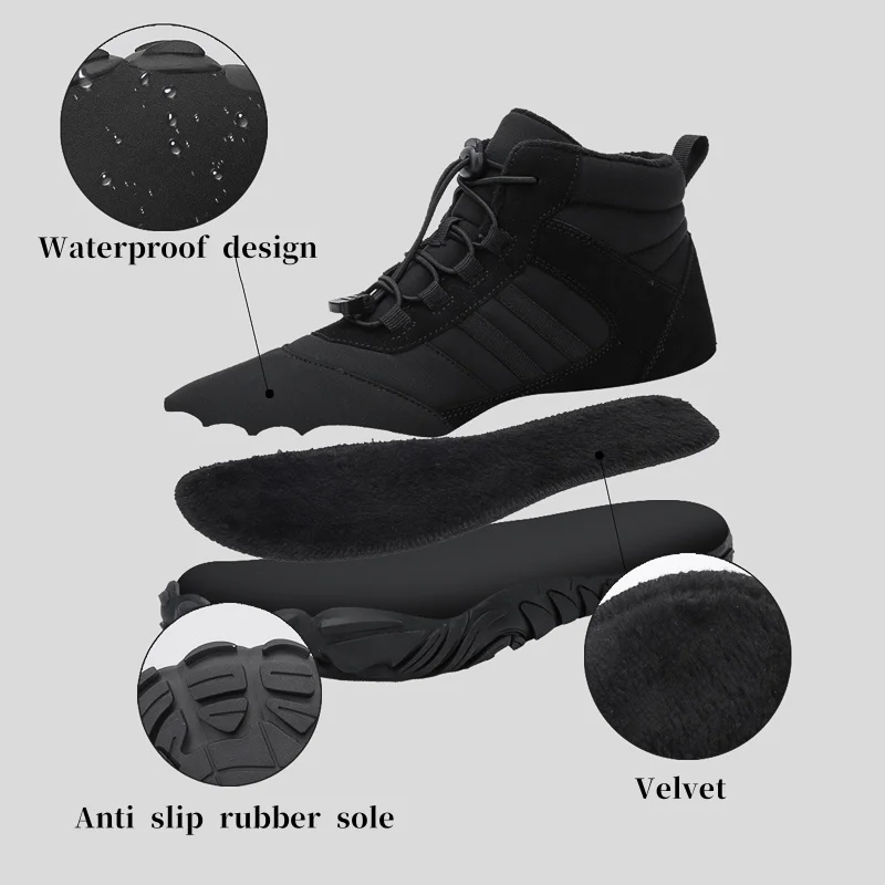 Experience ultimate comfort and protection this winter with our Waterproof Winter Barefoot Shoes, designed for both women and men. These versatile snow boots seamlessly combine style, warmth, and functionality, making them ideal for walking, hiking, and outdoor activities in cold, wet conditions. Available in a wide range of sizes and colors, they are tailored to meet the needs of every outdoor enthusiast who values performance without compromising on comfort.
