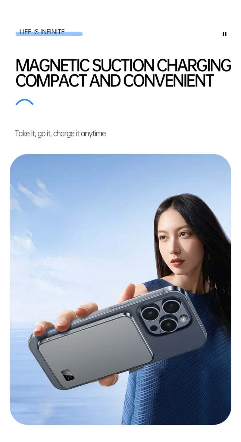 This power bank is ideal for users seeking reliable, on-the-go charging without the hassle of cables. The MagSafe magnetic feature simplifies alignment, reducing charging interruptions. Its large battery capacity means multiple full charges for your smartphone or extended power for tablets and other gadgets. Whether traveling, working remotely, or simply away from power outlets, this charger ensures your devices remain operational throughout the day.