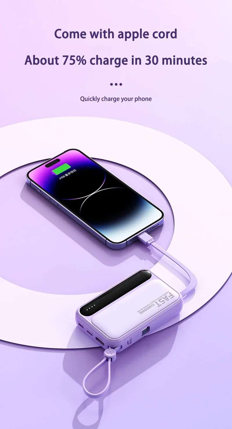 Experience unparalleled convenience with the Xiaomi 4 In 1 Power Bank, designed to keep your devices charged on the go. Available in multiple capacities and stylish colors, this power bank combines large battery capacity with intelligent features, making it the perfect companion for your iPhone and other devices. Its built-in cables and digital display ensure effortless and efficient charging wherever you are.