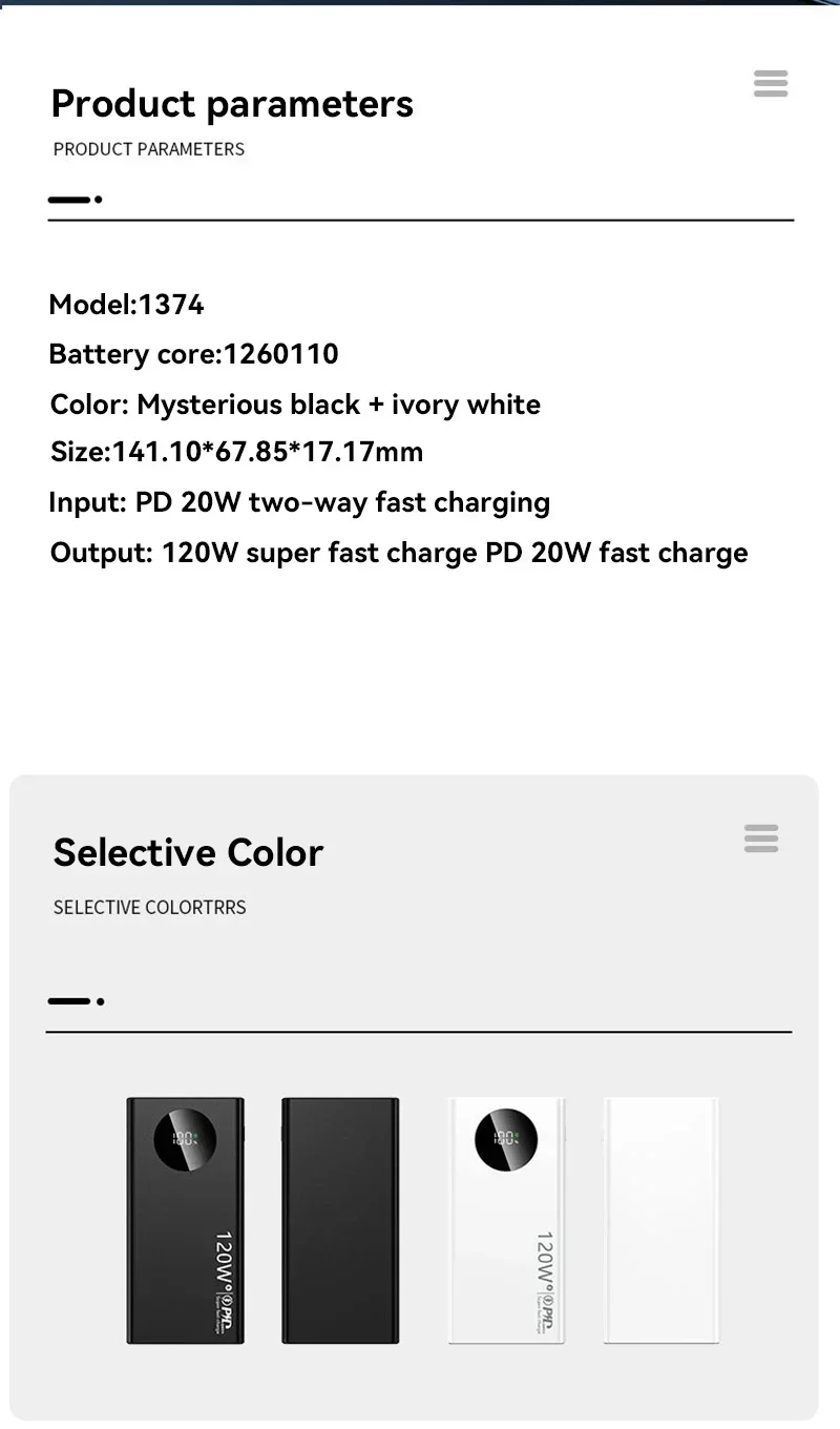 – Ultra-fast 120W charging technology significantly reduces recharge times for both the power bank and connected devices