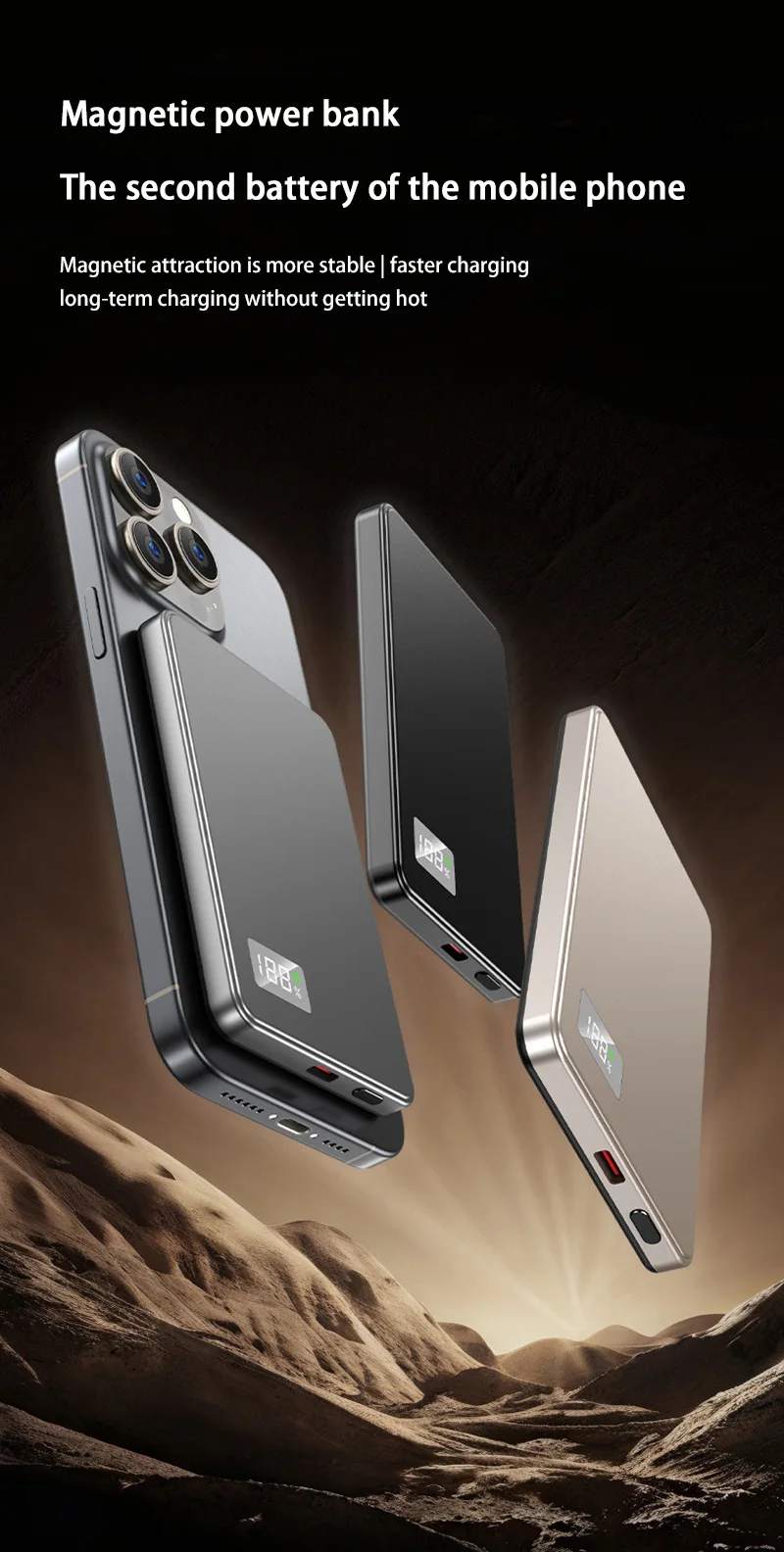 Keep your essential devices fully powered during travel, work, or daily commutes with this high-capacity power bank. The magnetic wireless feature simplifies charging by securely attaching your phone, eliminating cable clutter and wear. Fast Power Delivery reduces downtime, enabling you to charge efficiently and get back to using your device quickly. Whether for emergency backup or everyday convenience, this external battery enhances your mobile lifestyle with reliable, versatile power support.