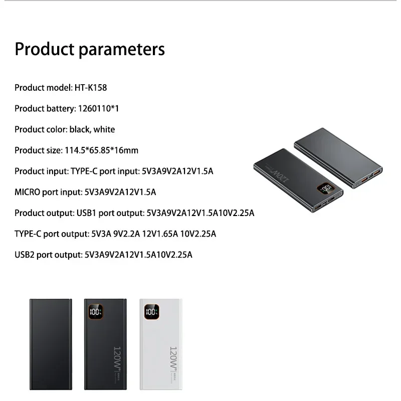 – Ultra-fast 120W output supports rapid charging for smartphones, tablets, laptops, and more.