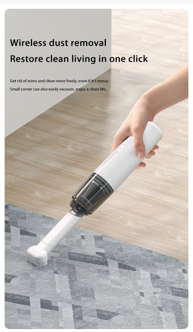 Revolutionize your cleaning routine with the Xiaomi Electric Vacuum Cleaner. Its exceptional power and portability mean you can achieve a spotless car interior without the hassle of cords or bulky equipment. At home, it's perfect for quick cleanups on furniture, countertops, keyboards, and even those hard-to-reach corners. The deep cleaning capabilities ensure that not only visible dirt but also microscopic allergens are removed, contributing to a healthier living space for you and your family. Ideal for pet owners, parents, and anyone who values a clean and comfortable environment, this vacuum offers unparalleled convenience.