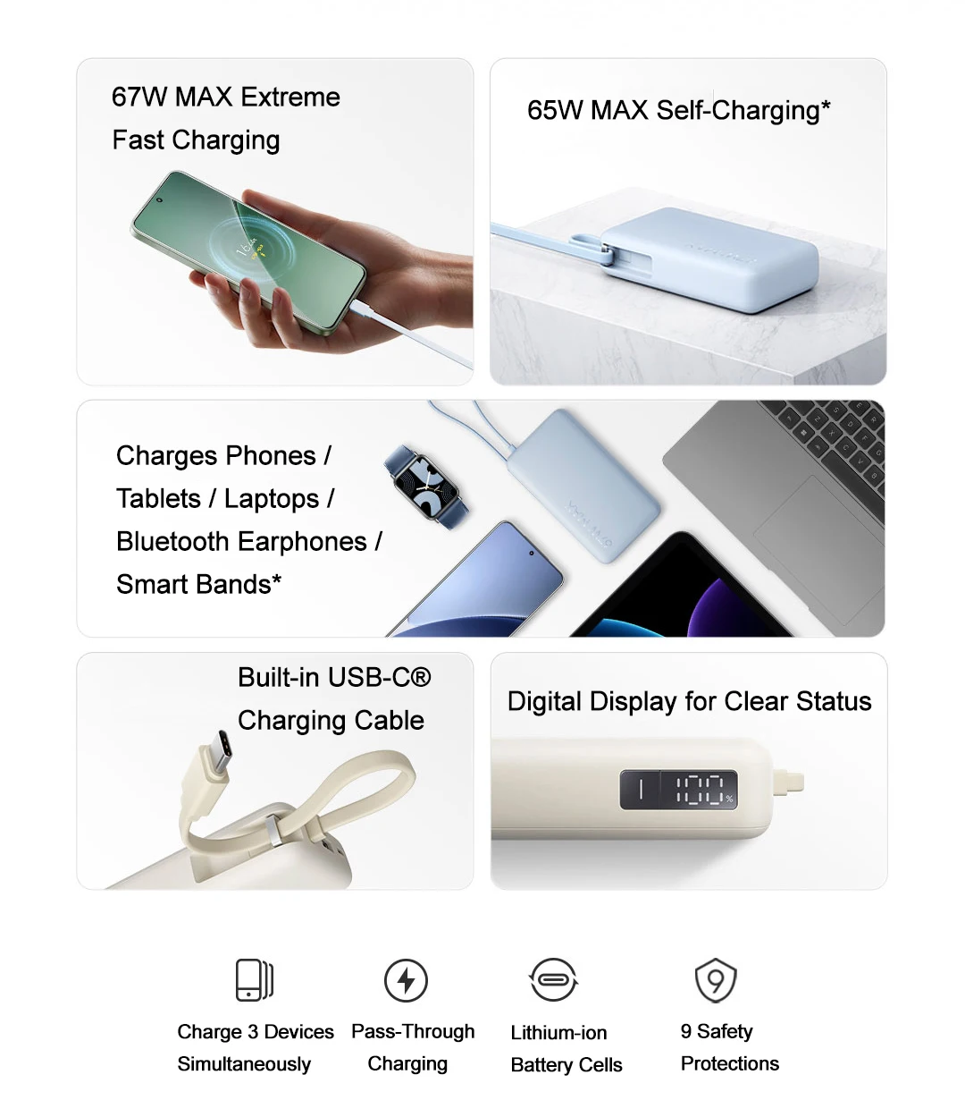 With its robust 10000 mAh capacity and powerful 67W output, this power bank is perfect for professionals and tech enthusiasts who demand reliable, high-speed charging on the move. The built-in USB-C cable streamlines your charging setup, reducing clutter and ensuring you’re always ready to power up. The digital display keeps you informed about battery status, so you never run out of power unexpectedly. Whether in meetings, outdoor adventures, or daily commutes, this power bank provides peace of mind and uninterrupted connectivity.