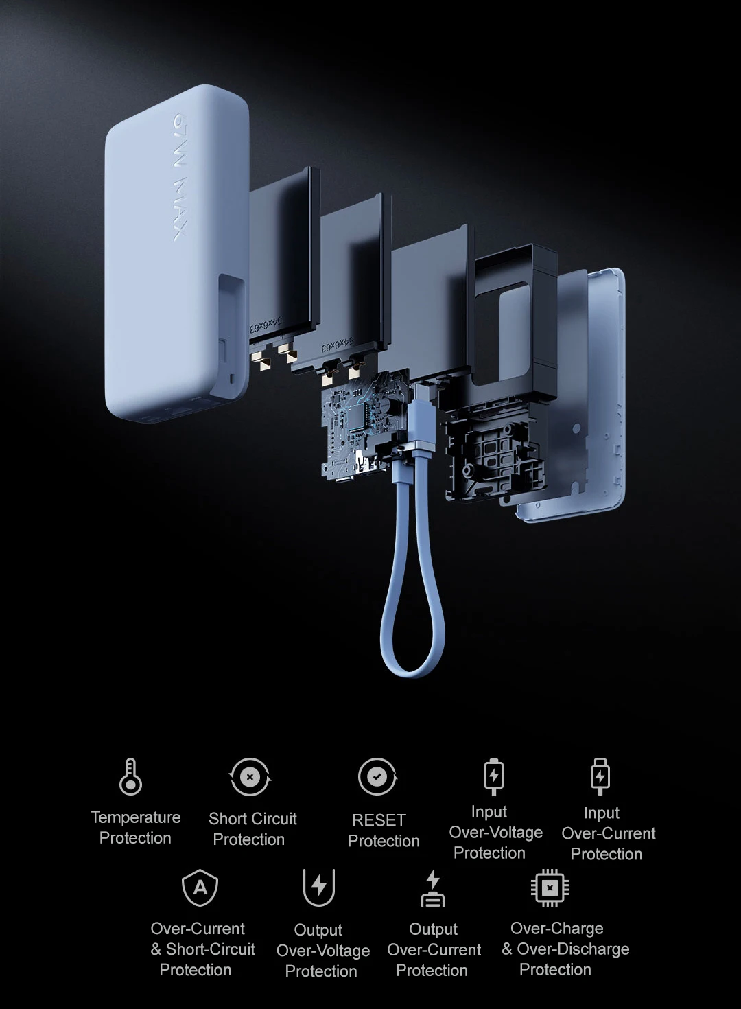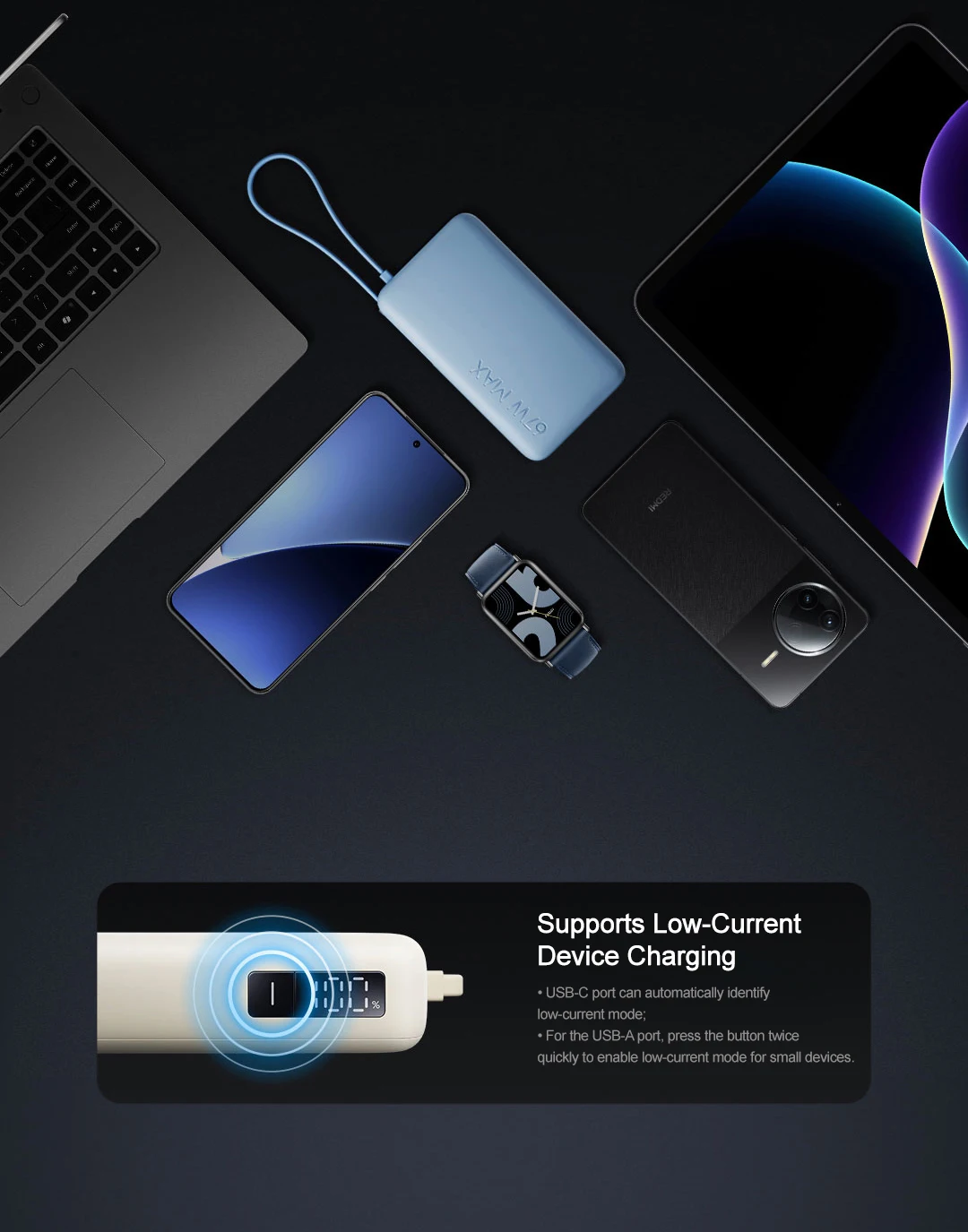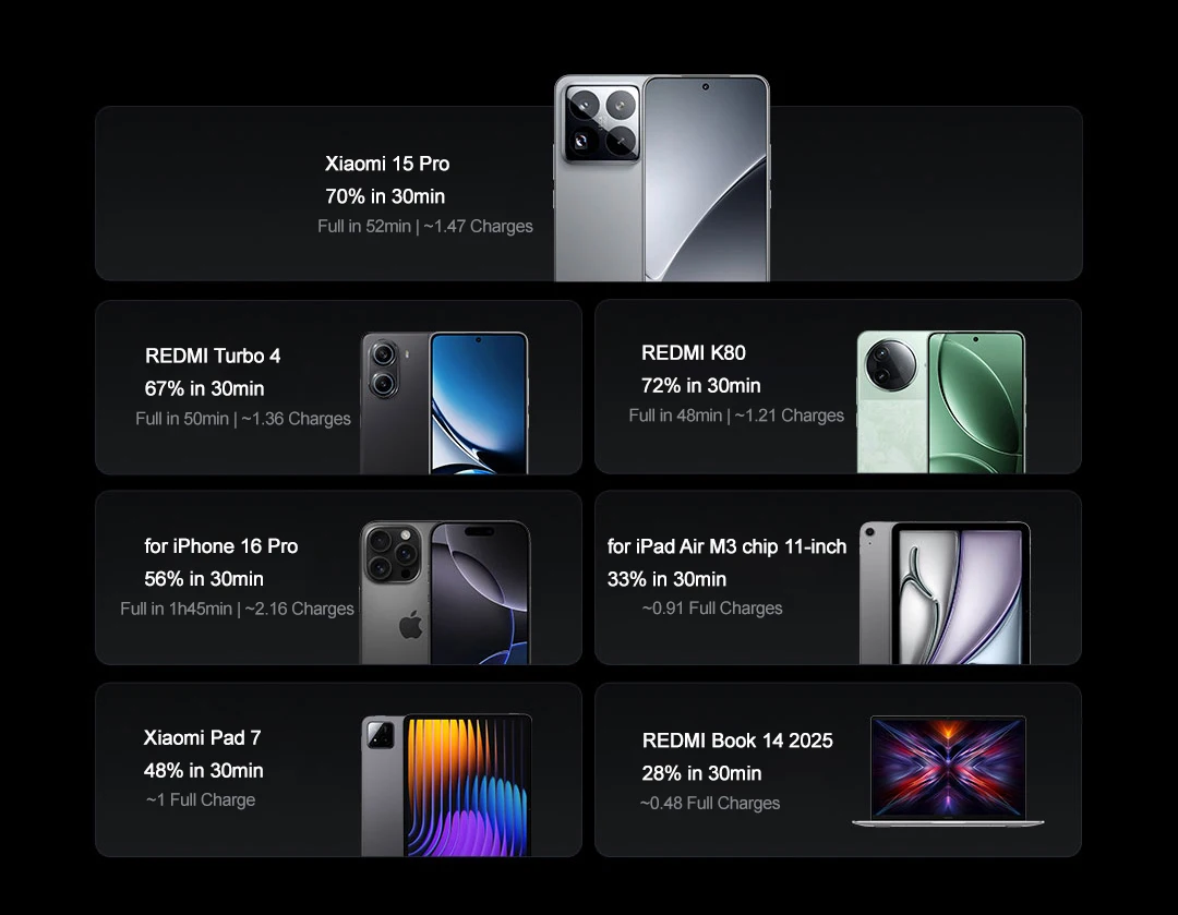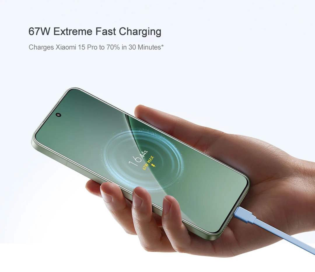 – Maximum power output of 67W supports fast charging and quick power replenishment.
