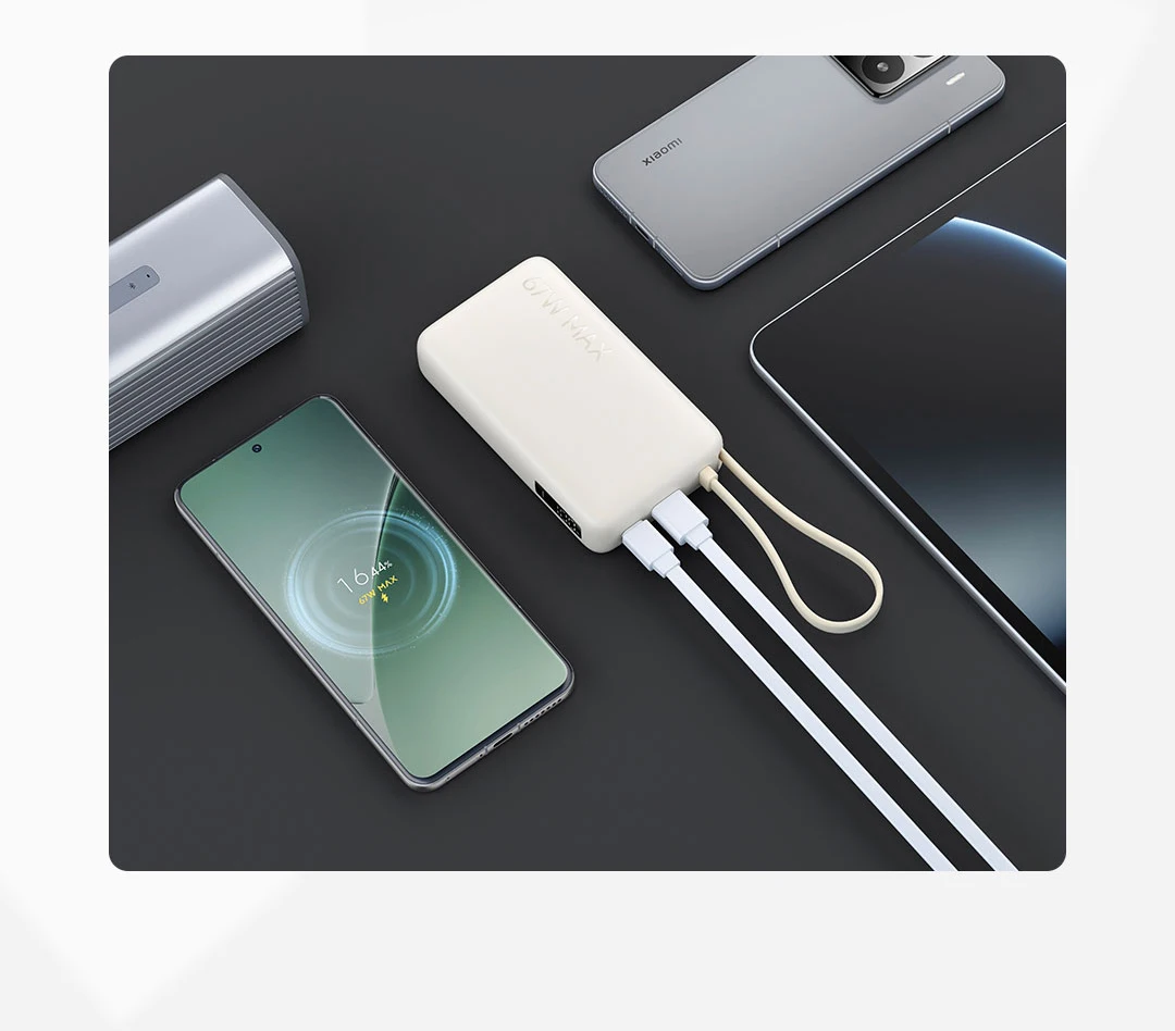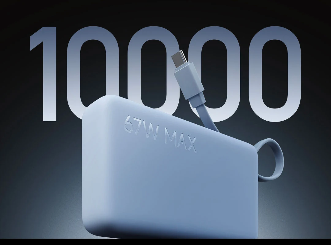 XIAOMI Power Bank 10000mAh delivers fast, reliable charging with 67W max output. Features a built-in USB-C cable, 2-way fast charge, and an intuitive display screen. Compact and powerful, it’s perfect for keeping your iPhone 17 and 16 Pro charged on the go.