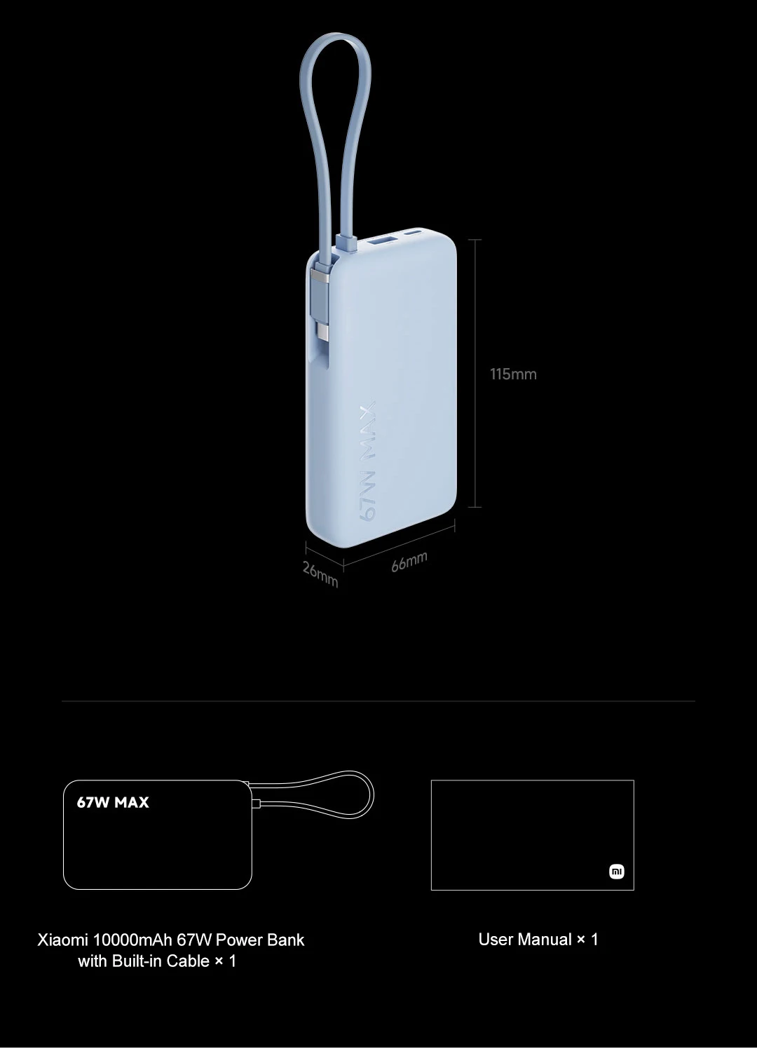 XIAOMI Power Bank 10000 mAh 67W Max Output with Built-in USB-C Cable