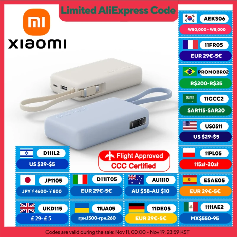 S7d0484c55f6d4ad5bf104e71818f48121.webpXIAOMI Power Bank 10000mAh 67W Max Output,Built‑in USB‑C Cable,2‑Way Fast Charge, Display Screen Powerbank For iPhone 17 16 Pro