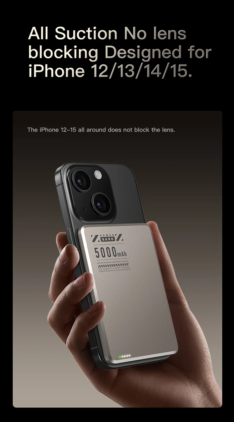 This power bank is perfect for busy professionals, travelers, or anyone who needs reliable power on the move. Simply attach it magnetically to your iPhone and enjoy fast wireless charging without interrupting your day. Its ultra-thin profile makes it easy to carry, while the 5000 mAh capacity provides enough energy to keep your phone operational during long commutes, meetings, or outdoor activities.