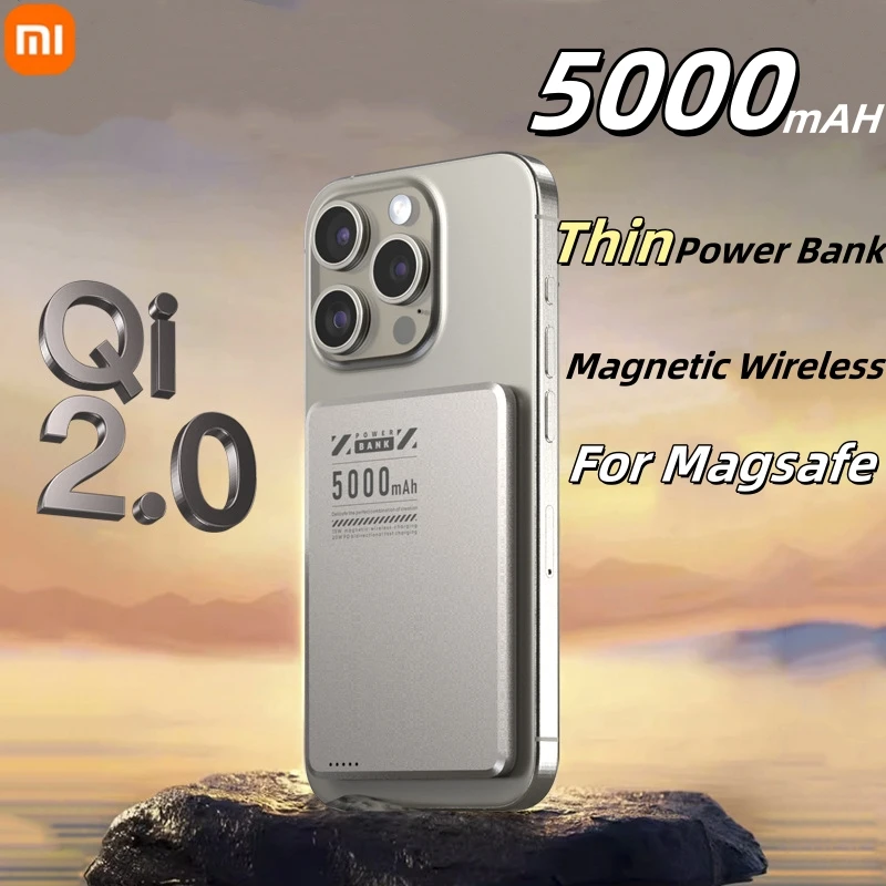 h1 Xiaomi Ultra Thin 5000 mAh Magnetic Power Bank Wireless Portable Travel External Battery Charger for MagSafe for iPhone 8-16