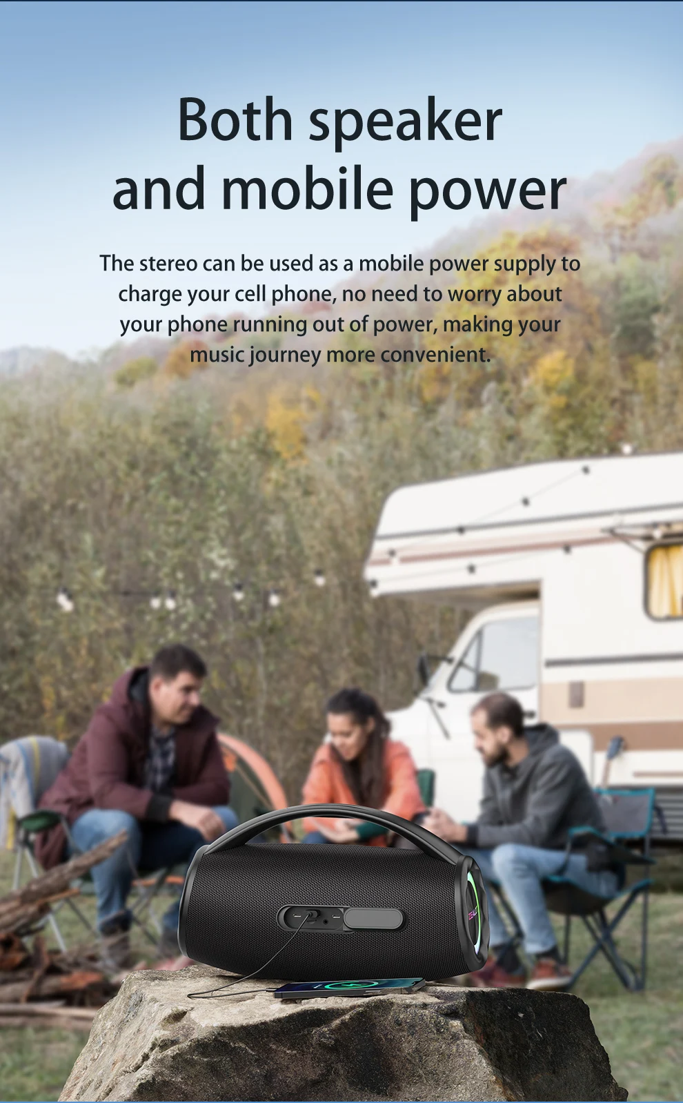 Experience powerful HiFi sound with the ZEALOT S97 80W wireless speaker. Featuring outdoor portability, dual pairing for stereo sound, fast charging, and a massive 16000mAh battery, it delivers long-lasting, immersive audio wherever you go. Perfect for any adventure or gathering.