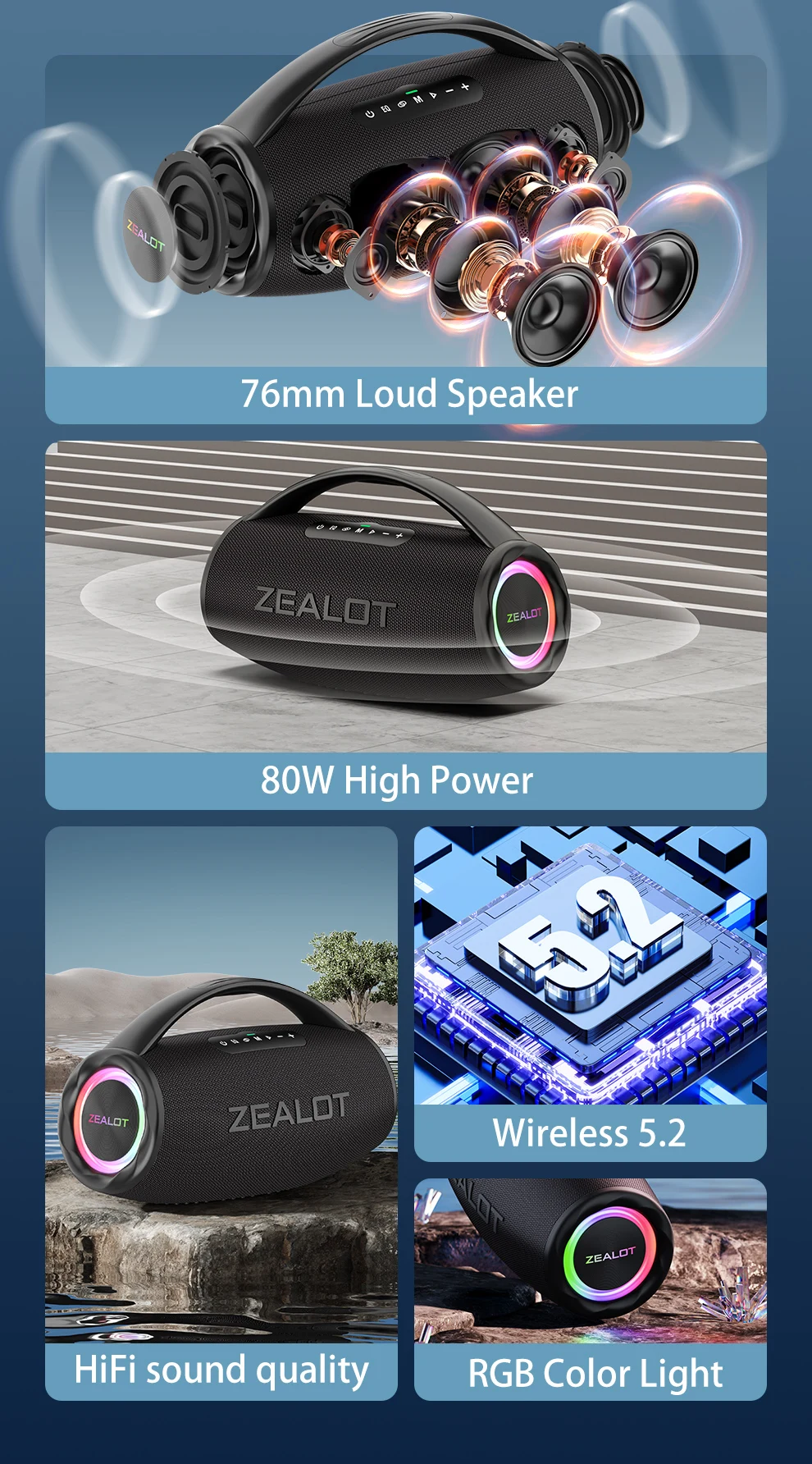 ZEALOT S97 80 W Wireless Speaker – Ultimate Outdoor Portable Subwoofer Experience
