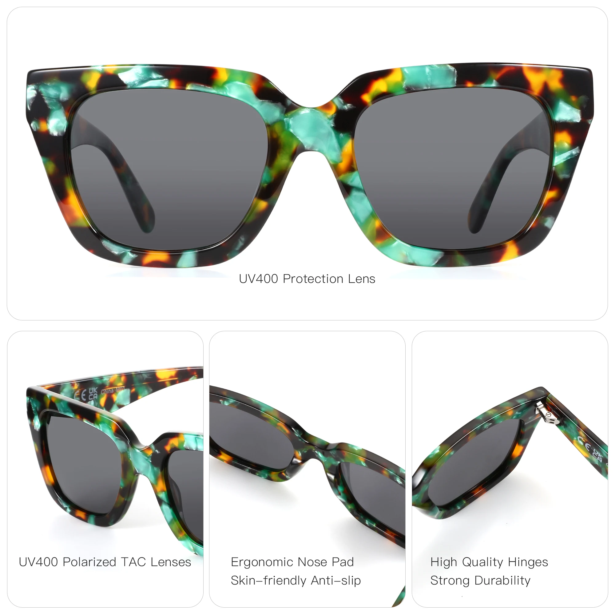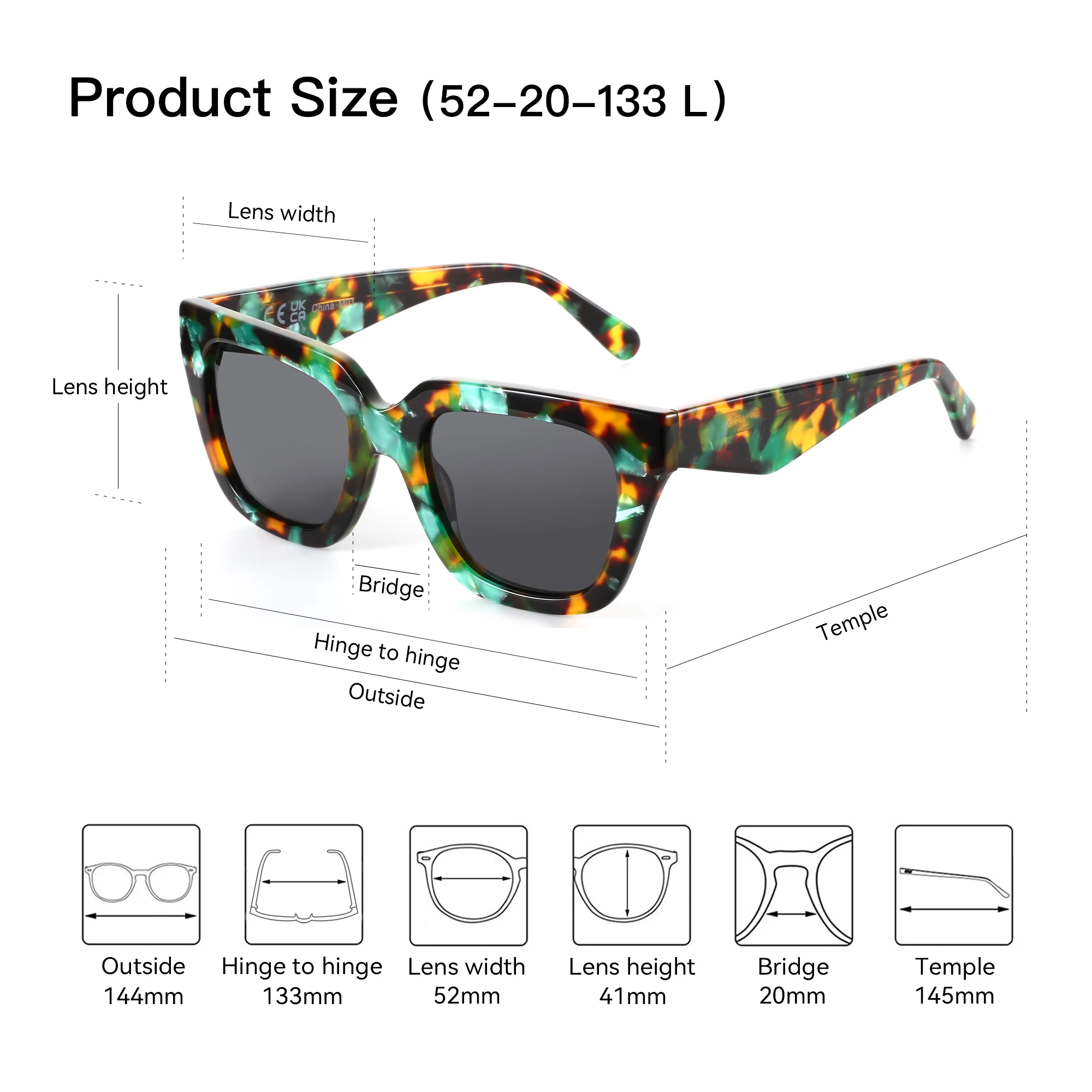 These sunglasses are designed to protect your eyes from the damaging effects of UVA and UVB rays while minimizing glare, making them ideal for driving, outdoor activities, or simply enjoying a sunny day. The polarized lenses enhance visual comfort and reduce eye strain, ensuring clear vision even in bright conditions. The stylish square acetate frame and exquisite butterfly design make these sunglasses a statement accessory that complements any outfit, boosting your confidence and personal style.